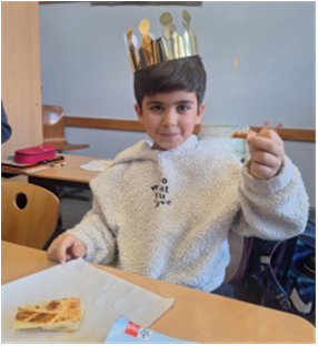 Seit dem 06.01., dem Dreikönigstag, backen Schülerinnen und Schüler des „Französisch- Fachbereichs“ in verschiedenen Konstellationen eifrig die berühmte „galette des rois.“ Alle Kinder lieben diese schöne Tradition und möchten gerne König oder Königin für einen Tag werden.