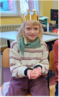 Und so sehen stolze Schüler*innen aus, die dieses Schuljahr das große Glück hatten, die fève zu finden. Hier nur ein paar wenige Beispiele aus den 2.3. 4. und 5. Klassen:
